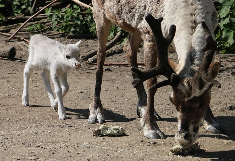 In der Rentierherde der Erlebniswelt Alaska gibt es regelmäßig Ende April, Anfang Mai Nachwuchs. Nach einer Tragzeit von 230 Tagen bringen die Weibchen den flauschigen Nachwuchs zur Welt. Das Fell aus luftgefüllten Haaren schützt das kleine Rentier besonders gut vor Kälte. Bereits eine Stunde nach der Geburt kann es laufen.